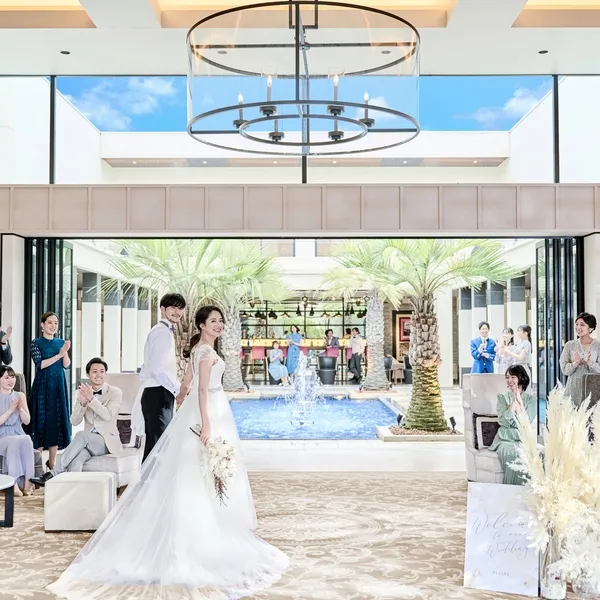| 模擬披露宴 | 【澄み渡る水とまばゆい光が創り出すリゾート空間がテーマのウォーターガーデン】パーティ入場のバリエーションが豊富なのも当館の特徴です!おふたりにあったパーティをご提案! |